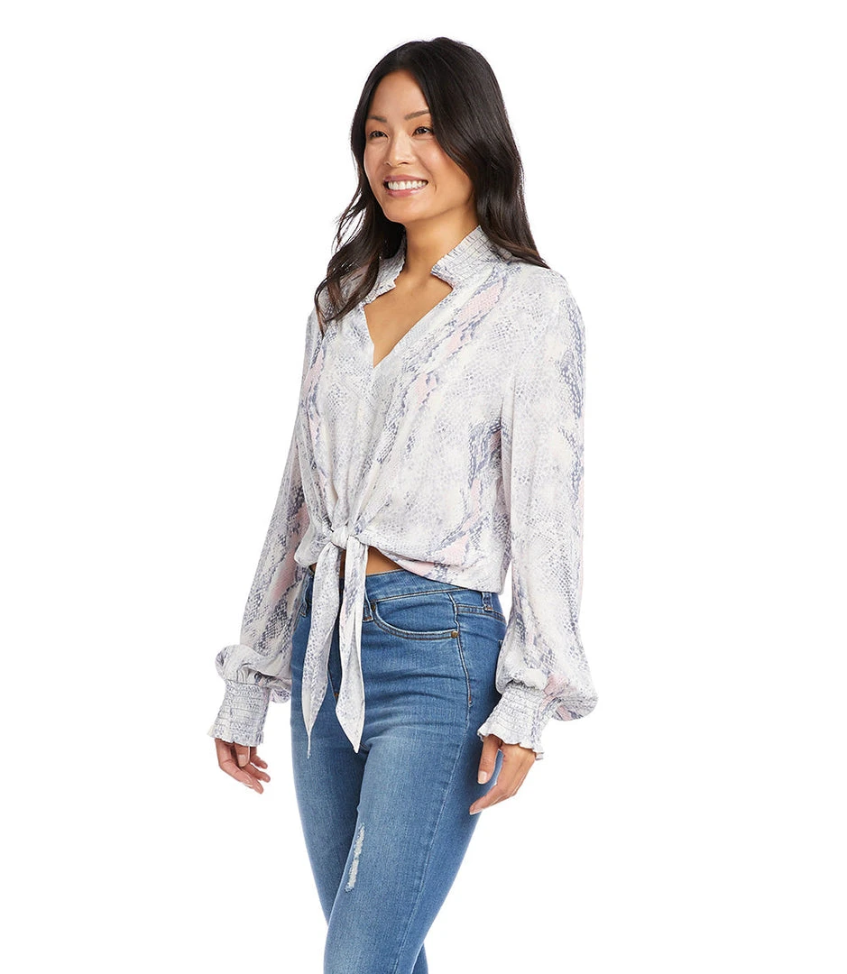 Karen Kane Smocked Tie-Front Top | Women’s Stylish Casual Blouse