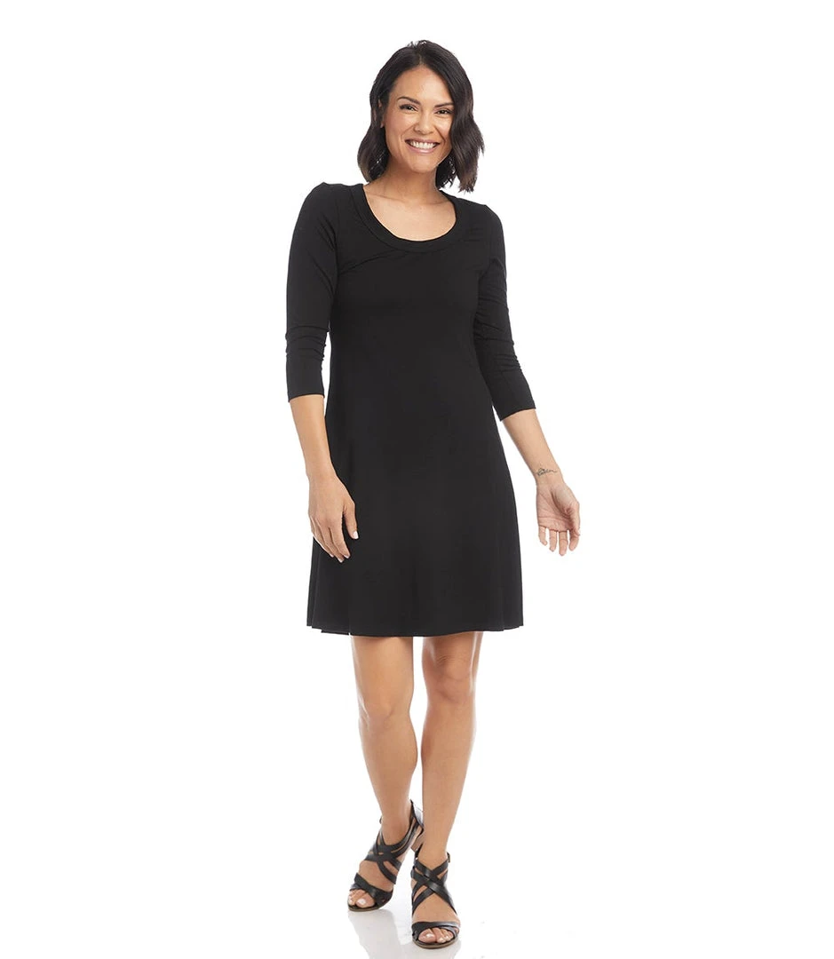 - Elevate your wardrobe with the Karen Kane Three Quarter Sleeve A-Line Dress. This best seller and new arrival is designed to flatter your figure with its timeless A-line silhouette.