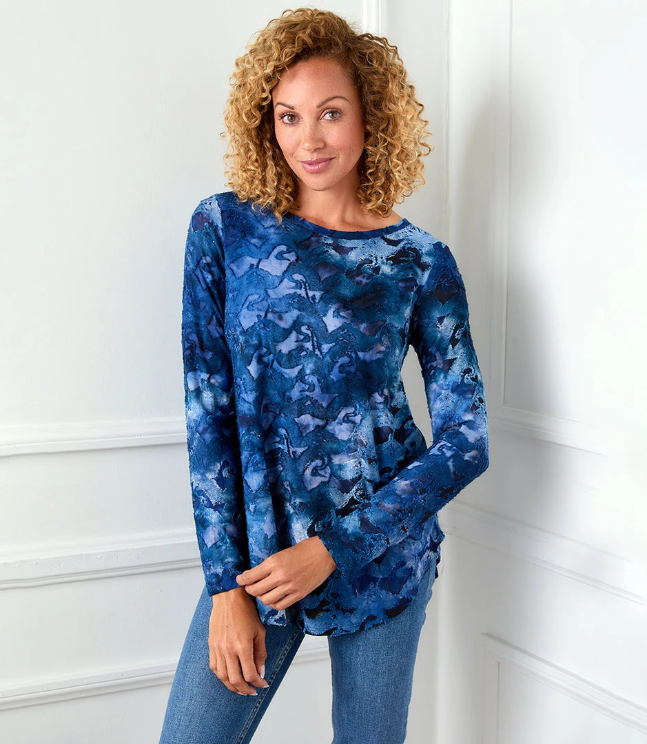 Karen Kane Tie-Dye Burnout Shirttail Top – Stylish Casual Women’s Clothing