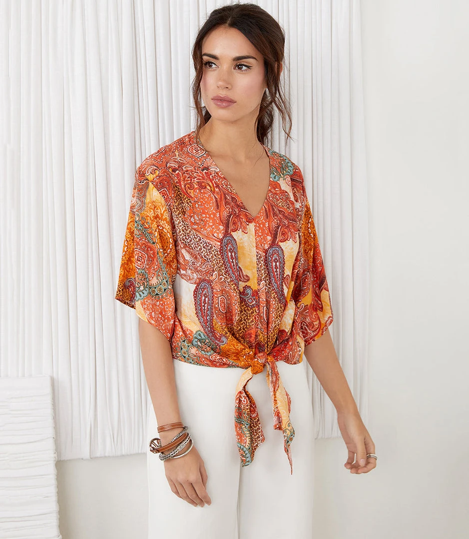 - Elevate your wardrobe with the Karen Kane Tie-Front Top, a versatile and stylish blouse designed for women who value both comfort and elegance.