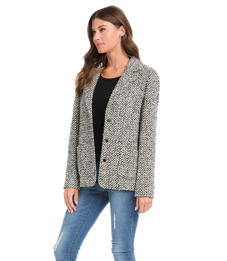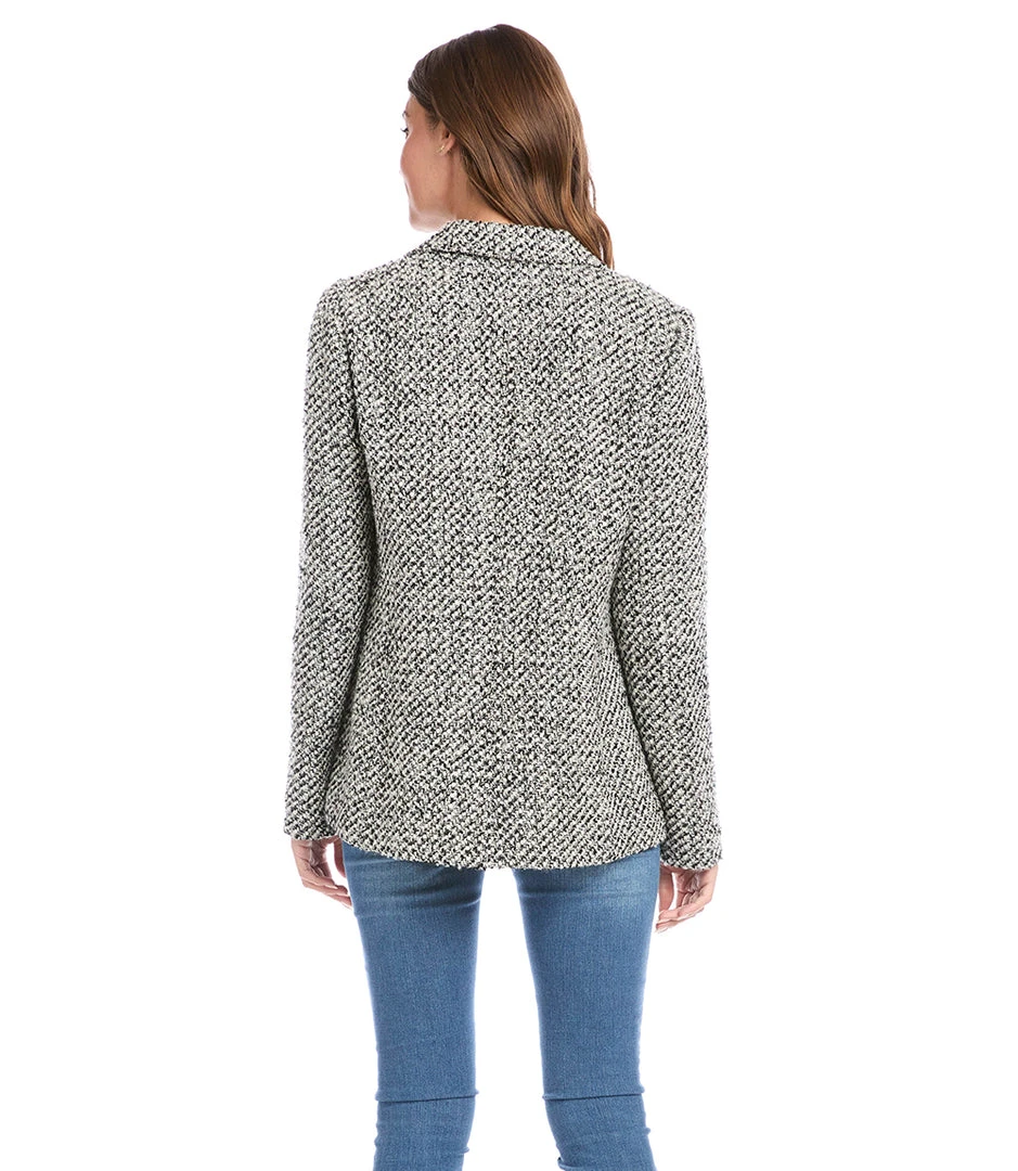 - Elevate your wardrobe with the Karen Kane Tweed Blazer, a must-have piece for any fashion-forward woman. This blazer combines classic tweed fabric with modern tailoring for a sophisticated look.