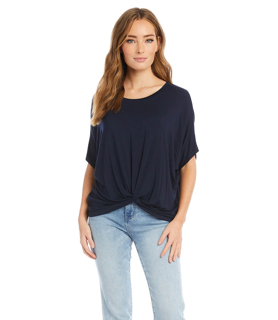 - Elevate your wardrobe with the Karen Kane Twist Front Top, designed for women who appreciate both style and comfort. This top features a unique twist front detail that adds a touch of elegance to any outfit.