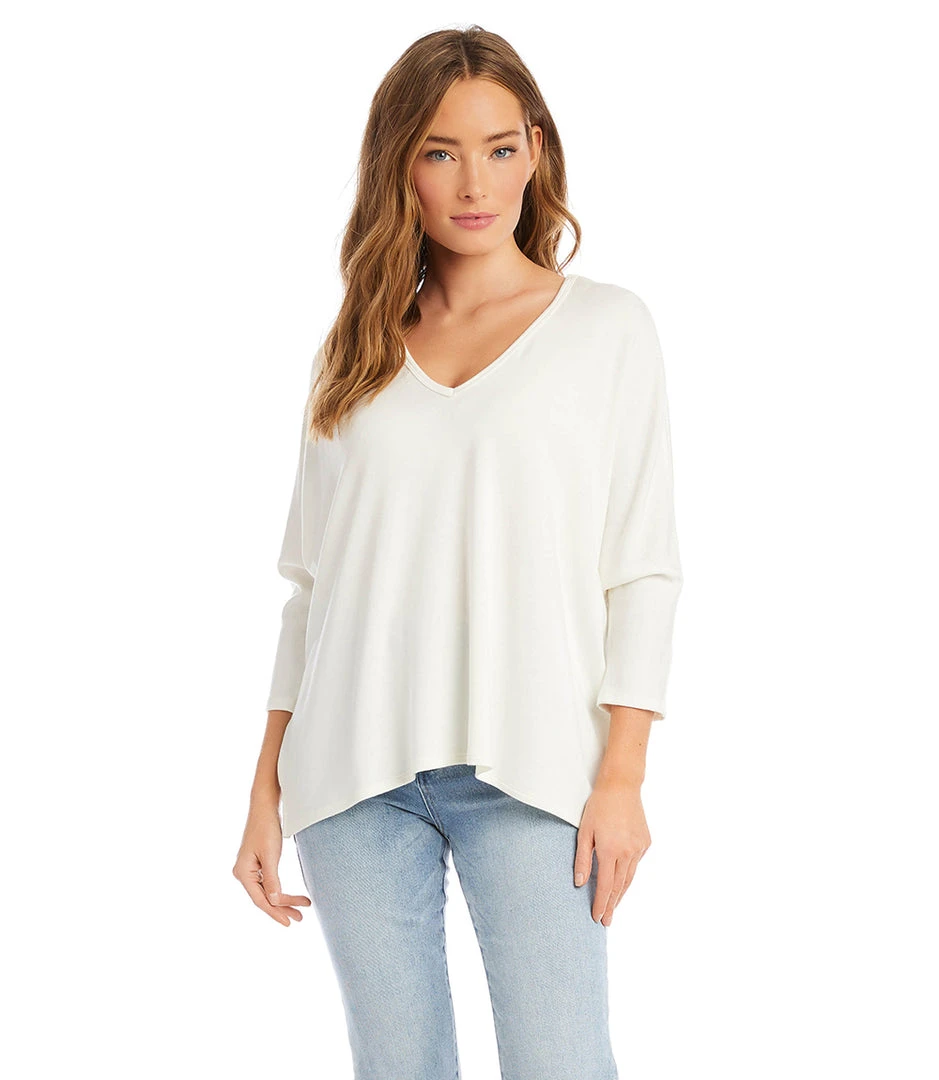 - Elevate your wardrobe with the Karen Kane V-Neck Top, offering a perfect mix of elegance and comfort for any occasion.