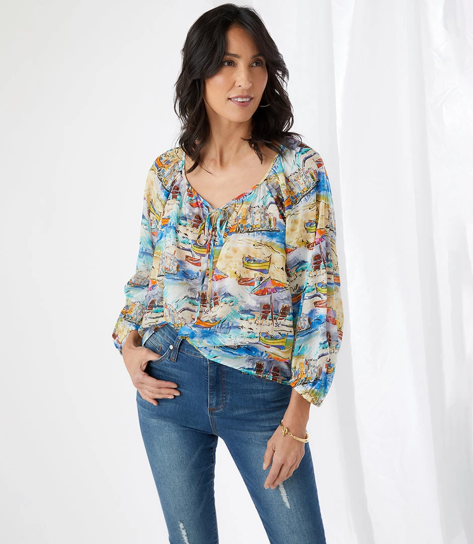 Karen Kane Women’s Bohemian Peasant Top | Flowy Casual Blouse | Long Sleeve Tunic