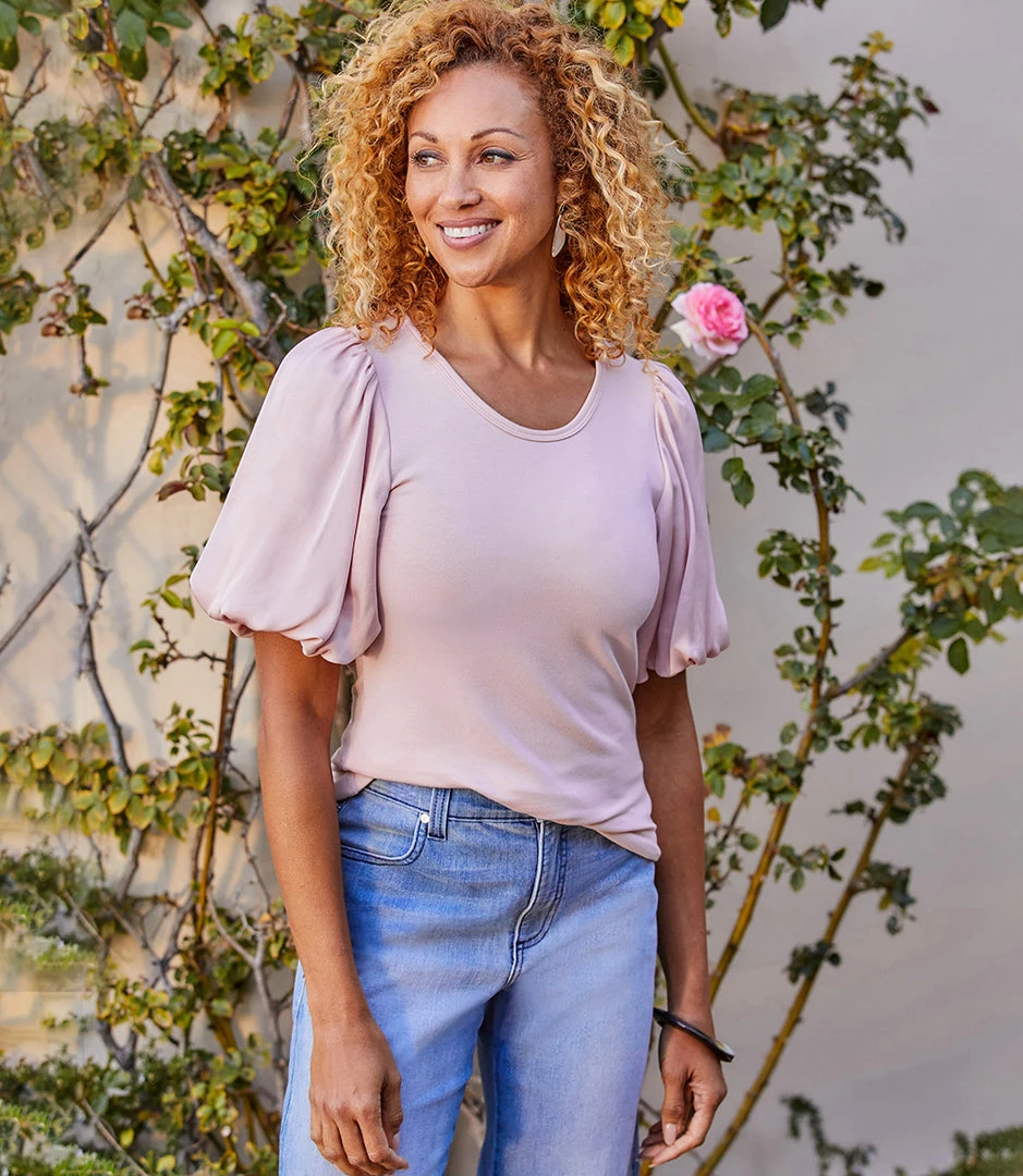 Karen Kane Women’s Contrast Satin Sleeve Top | Elegant & Comfortable Tops for Women