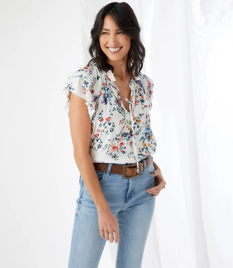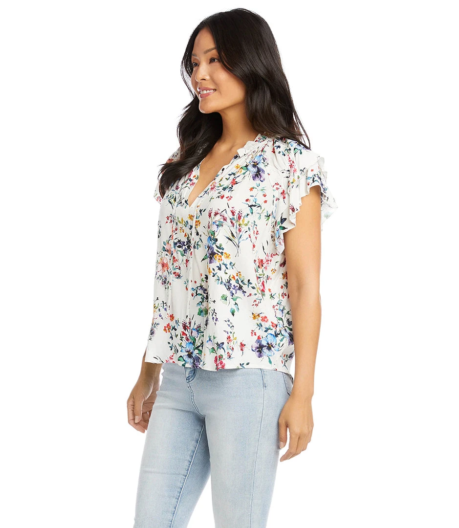 - Available in a range of colors, the Karen Kane Ruffle Tie-Neck Top is perfect for pairing with skirts, pants, or jeans. Whether you’re heading to the office or a weekend brunch, this top will keep you looking effortlessly stylish.