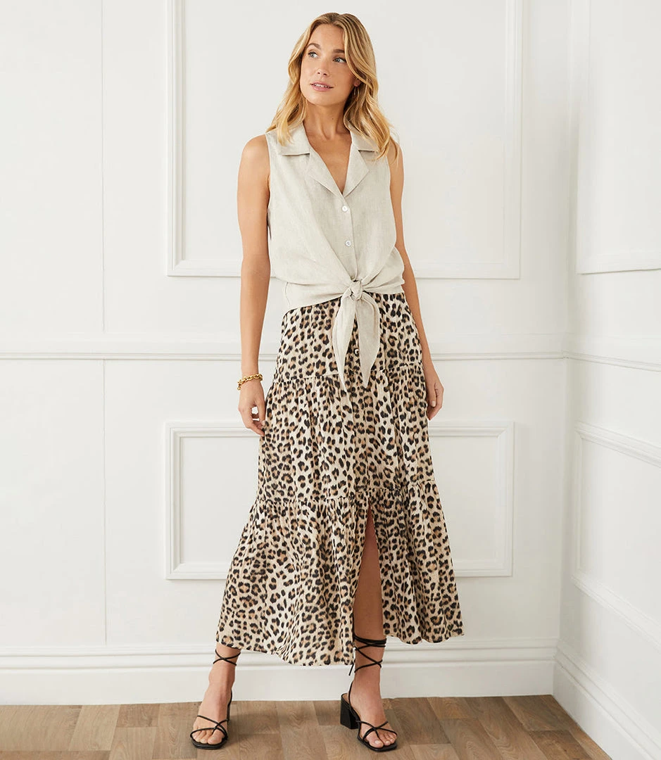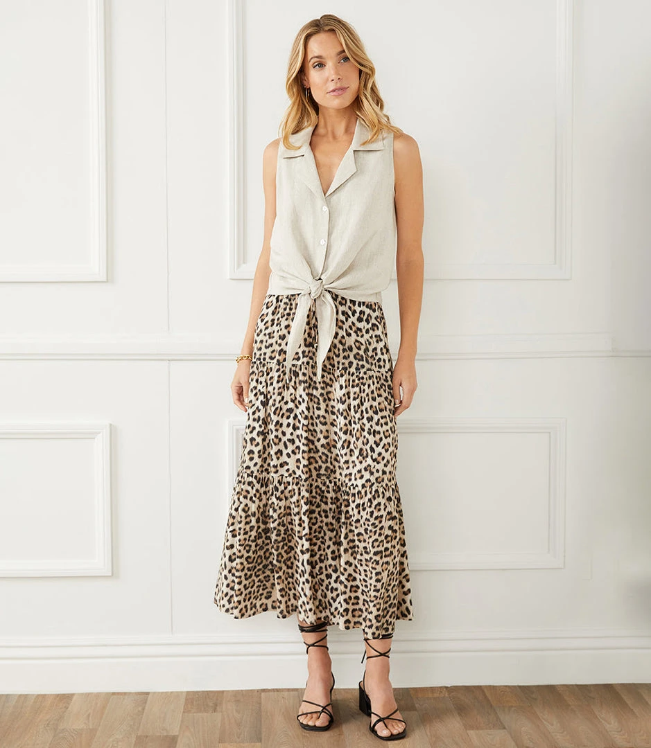 - Elevate your summer wardrobe with the Karen Kane Sleeveless Tie-Front Top. This stylish blouse features a flattering tie-front design and sleeveless cut, making it perfect for warm weather.